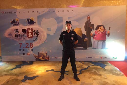 2017年7月26日我司派駐特勤安保人員26人參加了《豆福傳》在深圳舉辦的上映開幕式活動(dòng)。《豆福傳》是深圳市京基動(dòng)畫設(shè)計(jì)有限公司出品,鄒燚執(zhí)導(dǎo),陳佩斯、李立群、季冠霖、付博文等實(shí)力配音演員傾情加盟的3D歡樂修仙動(dòng)畫電影《豆福傳》于2017年7月28日登陸各大院線。