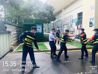 致敬馬巒派出所曾警官來我司駐學校安保人員進行應急防恐拉練活動。