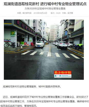 深圳觀瀾街道桂花新村城中村專業(yè)物業(yè)管理試點(diǎn)