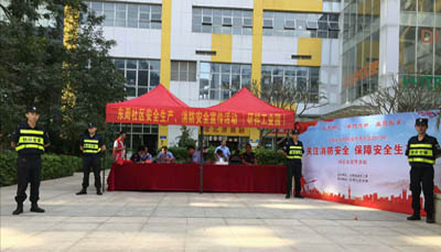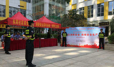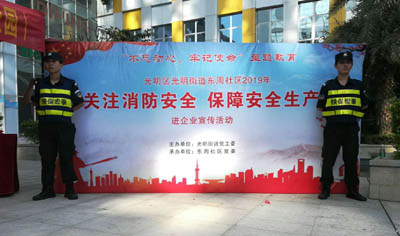 我司鐵保宏泰深圳保安公司配合客戶公司開展深圳市光明區光明街道東周社區2019年關注消防安全,保障安全生產宣傳活動,東周社區安全生產,消防安全宣傳活動(研祥工業園)。